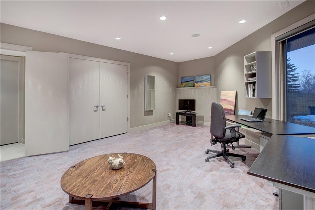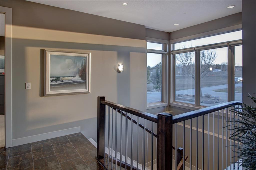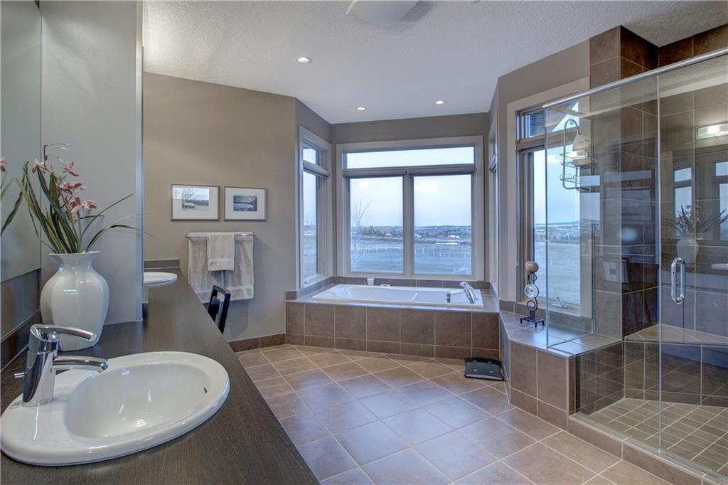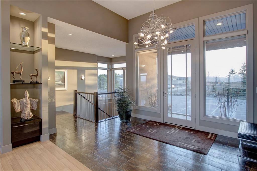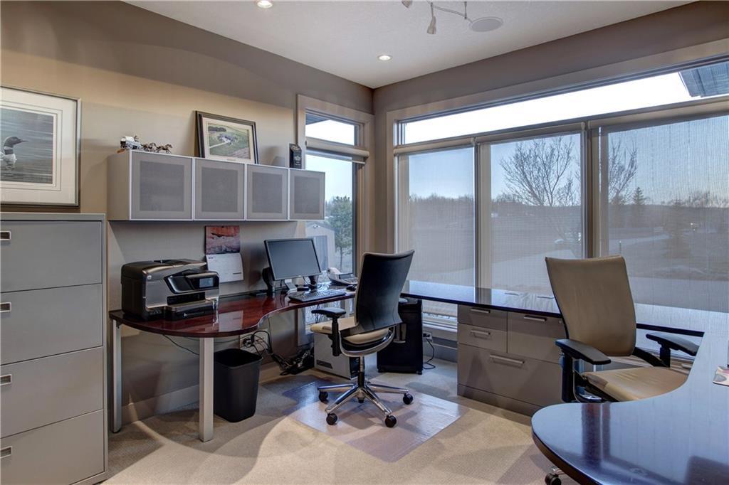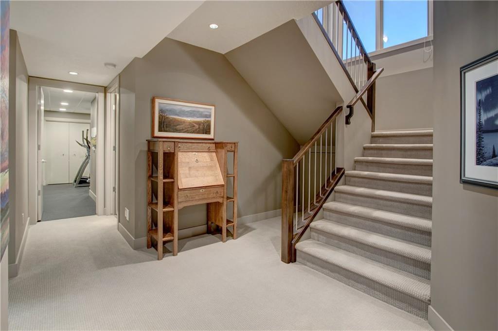The spacious, ‘entertaining ideal’ main floor with high ceilings has ‘hotel like’ master with luxurious en suite, office with custom built in desks, beautiful living room with gas fireplace open to the gourmet kitchen and dining area, big laundry room with hanging dryer for creaseless clothes drying, spacious foyer, 2 pce bath. The lower level contains 9 ft. ceilings, large family room with gas fireplace, beautiful guest bedroom, hobby room/3rd bedroom, exercise room that could be a fourth bedroom, tons of storage space in utility room & walkout to private patio area.